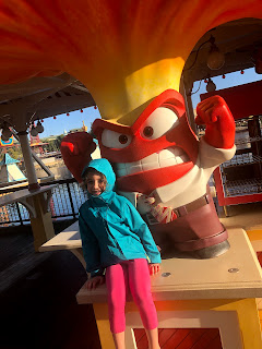 Avery enjoying playing while waiting for Reese and Nate to finish up a The Mummy ride